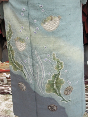紬地に絞り染めで